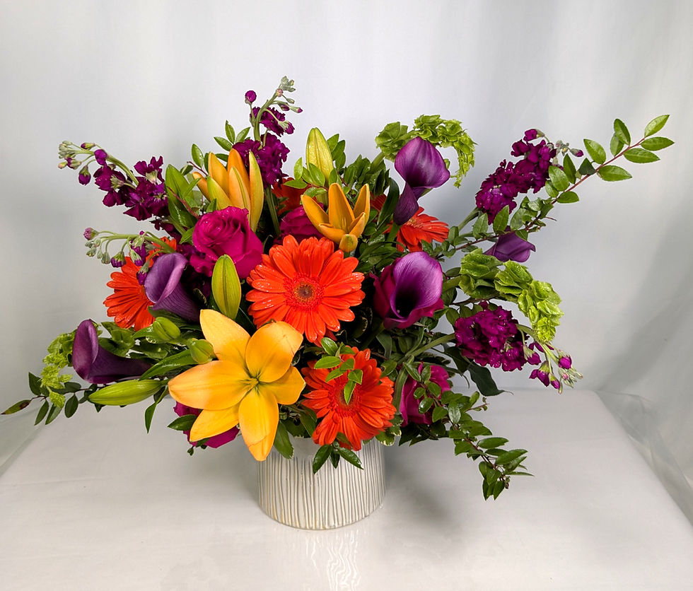 While we may not have the exact flowers in the picture our florist will select similar in season flowers.